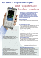 True portability A genuinely hand-held instrument Some manufacturers have stretched the term handheld to cover any battery powered instrument with a ‘flat’ format. Typical ‘hand-held’ spectrum analyzer 26 cm x 17 cm, weight >2kg Some of these are more than twice the width of an average hand, and weigh as much as a brick. Not so the PSA Series 5.