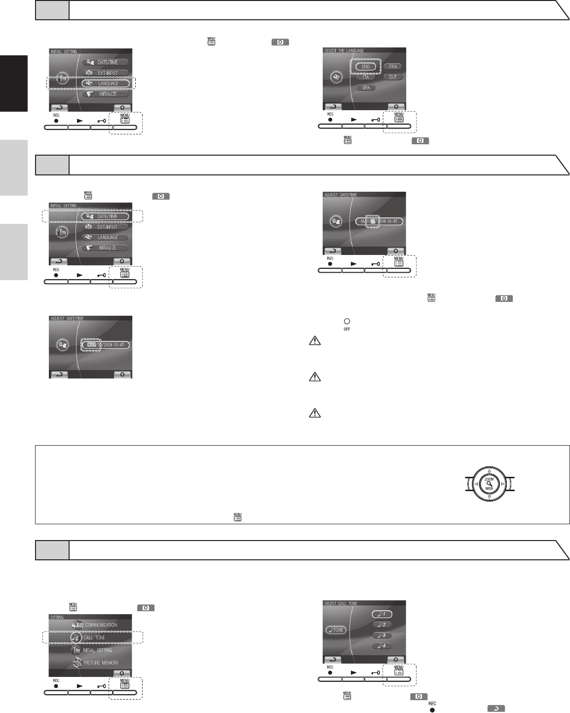 returns to its initial setting of "JAN/01/2009 00 : 00", and the menu