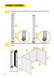 PRODUCT ASSEMBLY 03 Attach the plastic feet Part M to the metal bars Part K & L with the buckle. K L M M 04 Screw the curtain Part J to the INSIDE of Part I by 4xP3 screws.