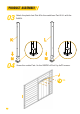 PRODUCT ASSEMBLY 01 02 Attach the plastic feet Part M to the metal bars Part D & E with the buckle. D E M M Attach the panel Part A, B, C with the metal bars Part D & E by 4xP1 screws.