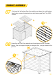 PRODUCT ASSEMBLY 09 Screw the roof hinge P6, one side to the roof by 2xP4 screws, the other side to the side panel by 2xP4 screws in left and right sides. P6 X2 P4 X8 10 09 Screw the lock P7, screw one side to roof by 2xP4 screws,screw the other to front panel by 4xP5 screws.