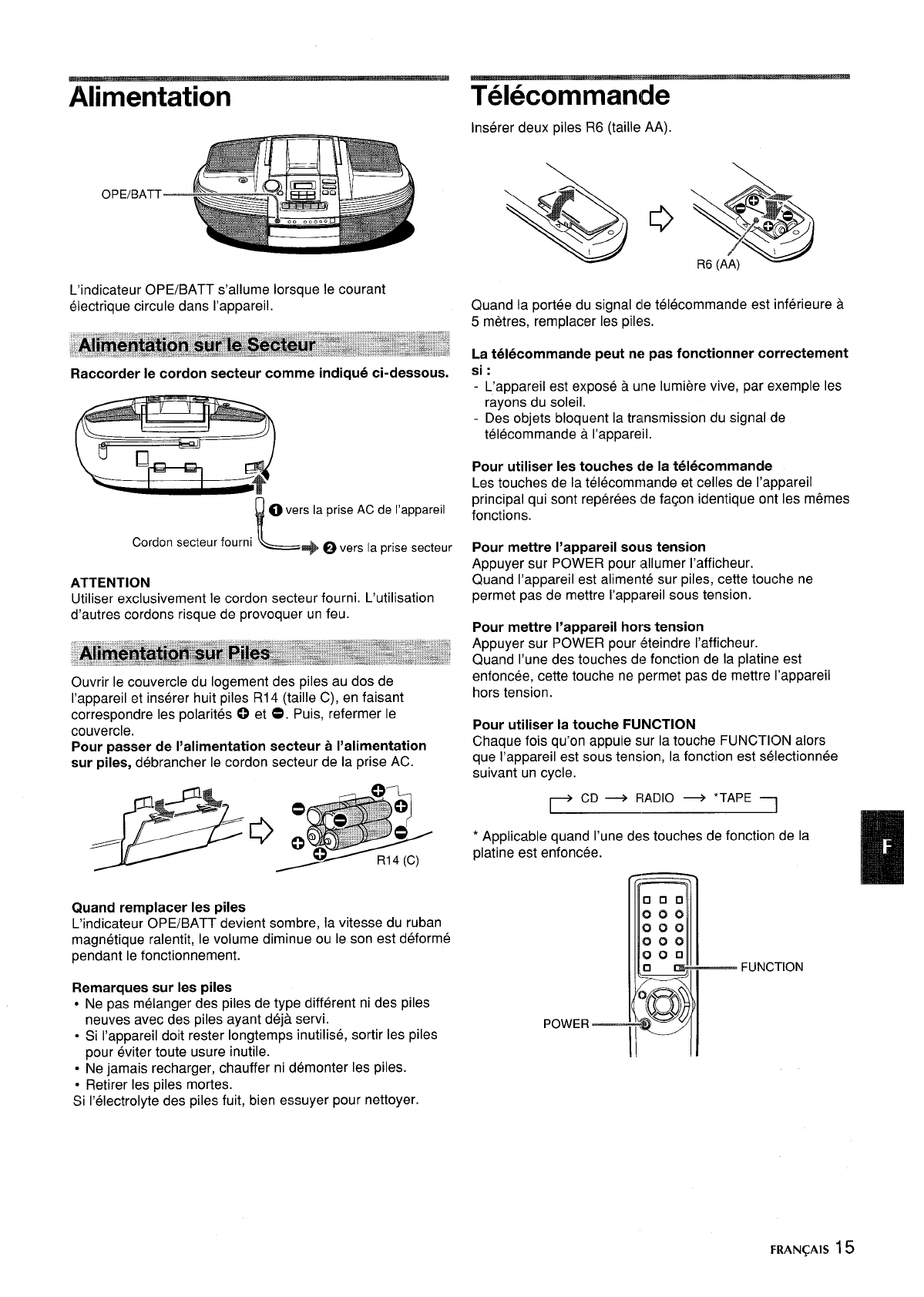 sur piles, debrancher Ie cordon secteur de la prise AC.