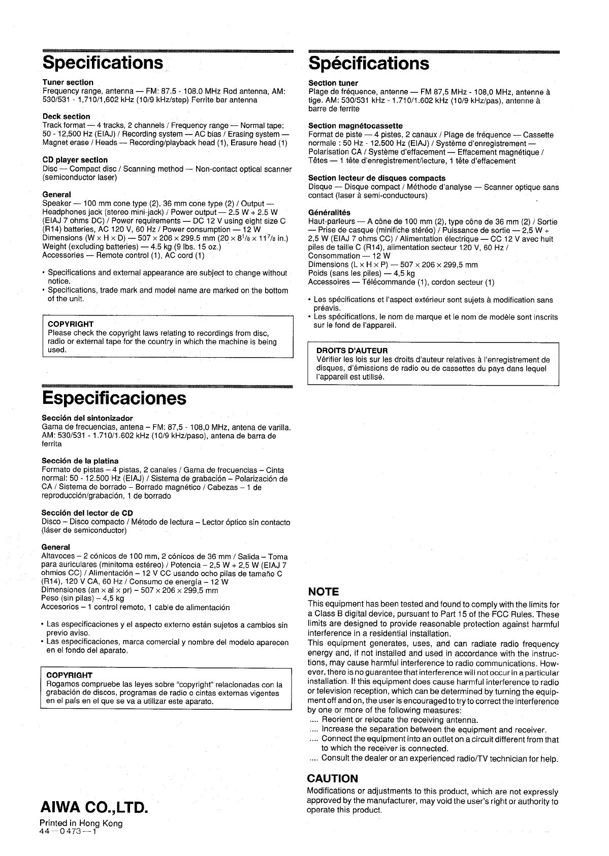 Compact Disc Stereo Radio Cassette Recorder Operating Instructions