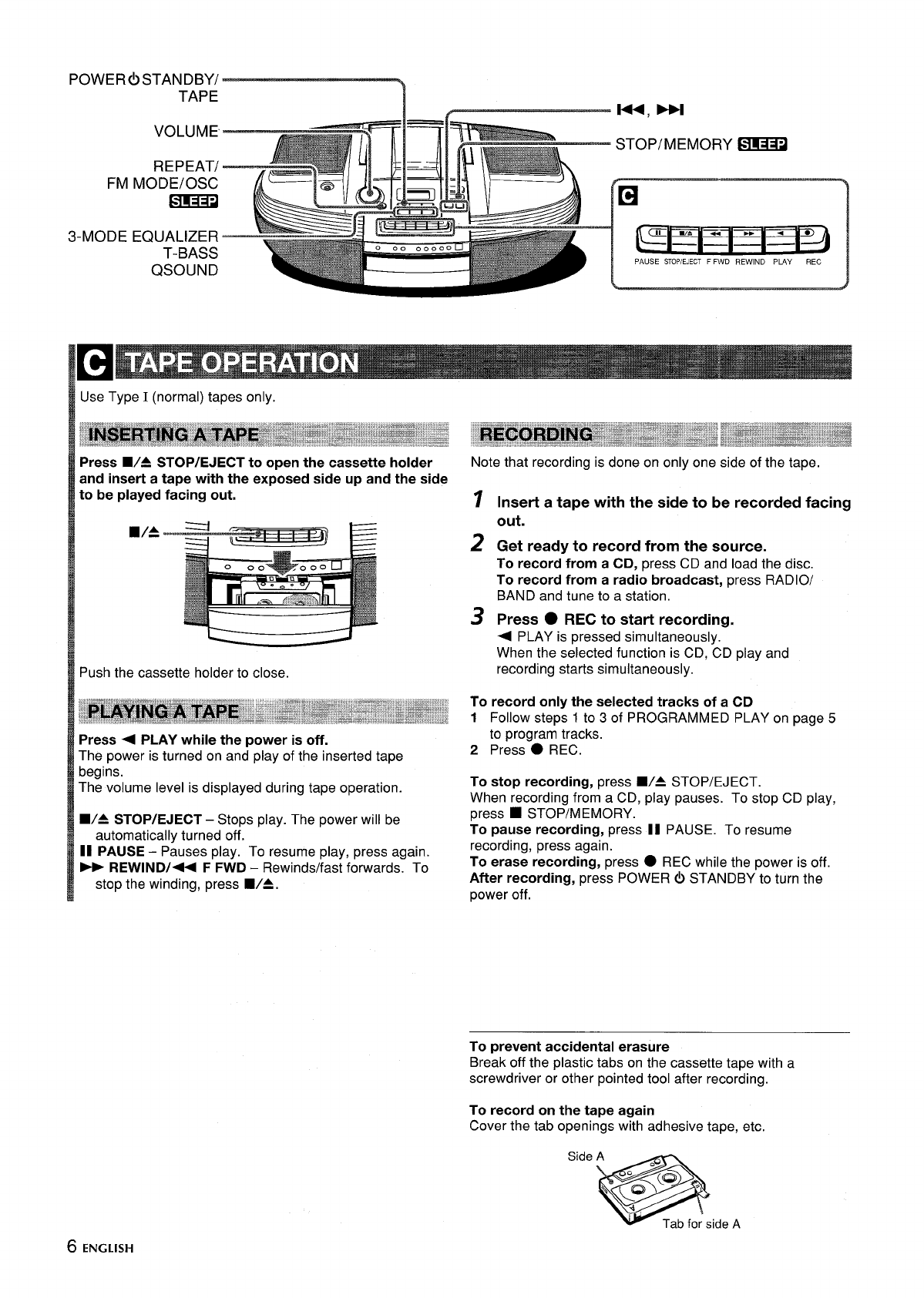 Compact Disc Stereo Radio Cassette Recorder Operating Instructions