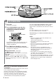 C TAPE OPERATION • Use Type I (normal) tapes only. • The unit plays (records on) the side facing up. PLAYBACK 1 Press TAPE. The power is turned on. 2 Press PUSH EJECT to open the cassette holder and insert a tape with the side to be played facing up and the exposed side facing forward. RECORDING 1 Insert a tape with the side to be recorded on facing up and the exposed side facing forward. 2 Get ready to record from the source. To record from a CD, press CD and load the disc.