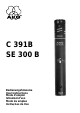 The C 391 B is delivered with the following modules and accessories: • • • • SE 300 B powering/output module CK 91 unidirectional microphone capsule with cardioid response W 90 foam-type windscreen SA 40 “quick release” stand adapter The microphone features extremely low handling noise due to the lowmass diaphragm and smooth body finish, low r.f. interference due to screening- and filtering technique, and will work under almost any condition due to the conservative and reliable design.