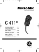 5754_08_C411_U10340_rv.qxp:1088_08_C411_U10340_fsch 28.10.2008 1 Description • Rugged vibration pickup for instrument miking on stage. • Frequency response tailored to acoustic guitar, banjo, zither, and bowed string instrument miking. • Complete with adhesive compound for mounting the pickup directly on the instrument. The C 411III is a vibration pickup that converts the vibrations of an instrument’s soundboard into an electrical signal.