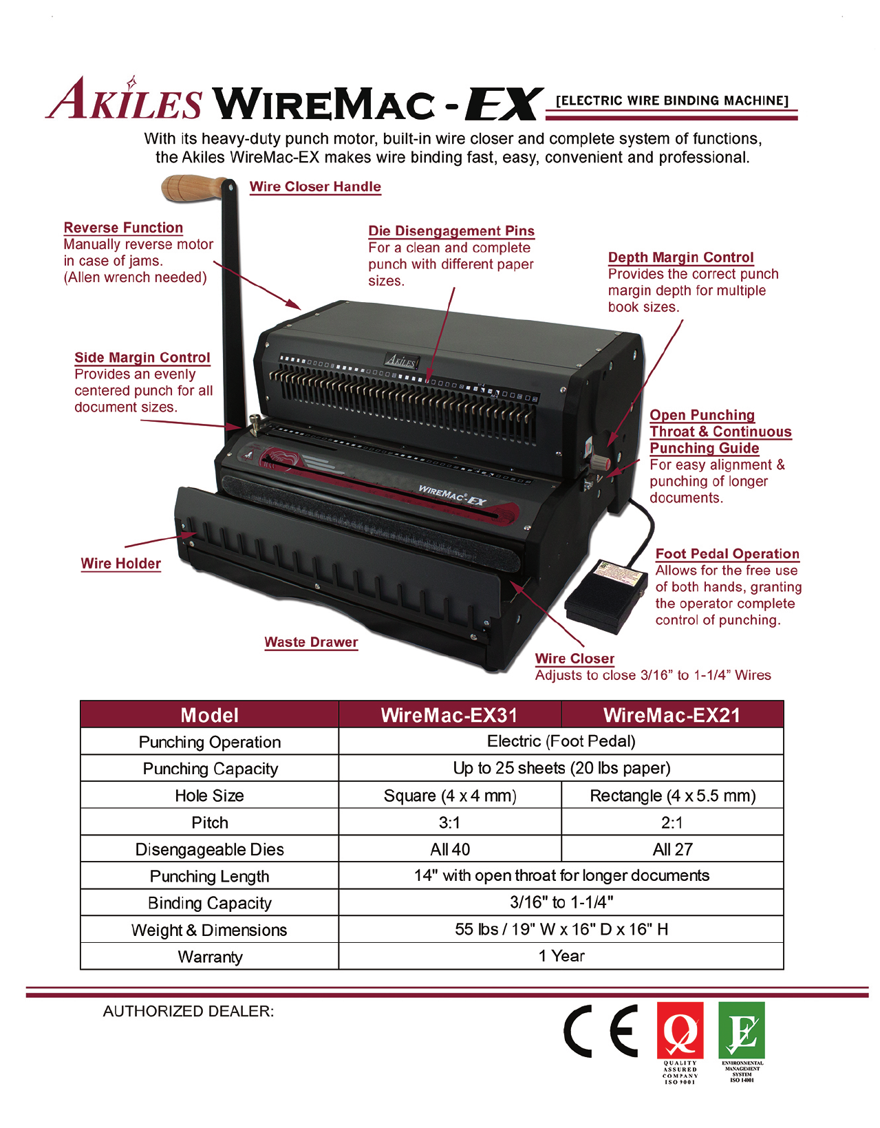 Akiles WireMac-EX31 Wire Binding Machine Electric Heavy Duty