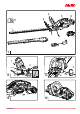 pl Obsługa Uruchomienie nożyc do żywopłotu 1. Stanąć w stabilnej pozycji. 2. Jedną dłonią ująć przedni uchwyt drugą - uchwyt tylny. 3. Nacisnąć oba włączniki (5) na uchwytach; urządzenie rozpocznie pracę. 4. Podczas pracy należy trzymać oba włączniki wciśnięte. 5. Gdy tylko jeden z włączników zostanie zwolniony, nożyce do żywopłotu wyłączą się. INFORMACJE O PRACY Wbudowana poziomnica 1-5, 5) ułatwia proste cięcie Zawsze najpierw dokonać przycięcia po obu stronach żywopłotu, a na końcu na górze.