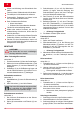 Startup 3. Lock the gas lever as described under “Cold start”. 4. Pull the starter cord a maximum of 6 times. ➯ the engine starts. 5. Keep the gas lever pressed down until the engine runs smoothly. Engine does not start 1. Set the choke to the “RUN” position. 2. Pull the starter cord 5 times. If the engine still does not start 1. Wait 5 minutes and then try again with the gas lever pressed down. OPERATION Always let the engine run in the upper speed range during trimming and cutting.