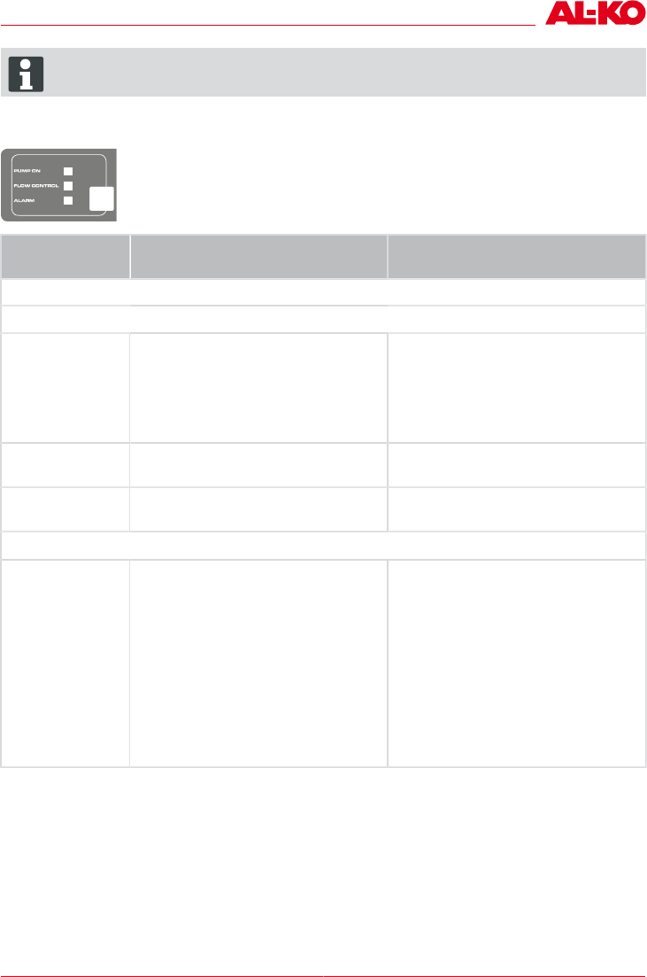 LED indikatori nedeg. Sūknis ir sasniedzis iestatīto