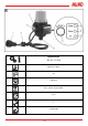 HR Neprimjerena uporaba Tlačna sklopka nije predviđena za neprekidan rad. Ne smije se koristiti za prijenos sljedećih tekućina: vode za piće slane vode pića i tekuće hrane prljave vode korozivnih tekućina ili kemikalija kiselina ili goriva, eksplozivnih i isparavajućih tekućina tekućina temperature više od 35 °C pjeskovite vode ili vode koja sadrži abrazivna sredstva.