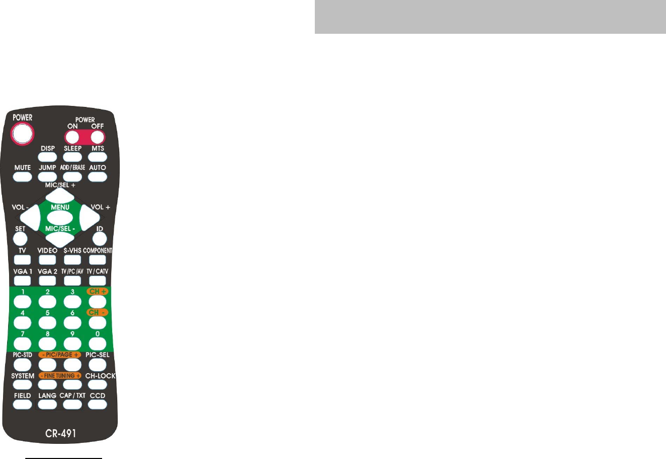 DISP, SLEEP, MTS, JUMP, ADD ∕ ERASE, AUTO, TV, VIDEO, S-VHS,