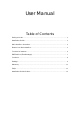 User Manual Table of Contents Safety and Use ...................................................................................................................... 2 Installation Guide ................................................................................................................. 4 Main Interface Overview ................................................................................................... 4 Entrance to Main Interface .........................................................