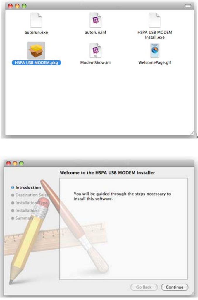 10.5.x, 10.6.x. Please double-click the file HSPA USB MODEM.pkg
