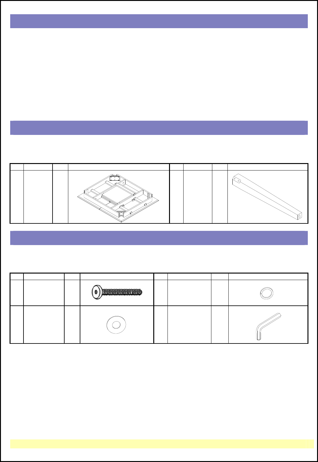 Please separate, identify, and count all parts and metal hardware. Compare with part list to be sure all parts are present.