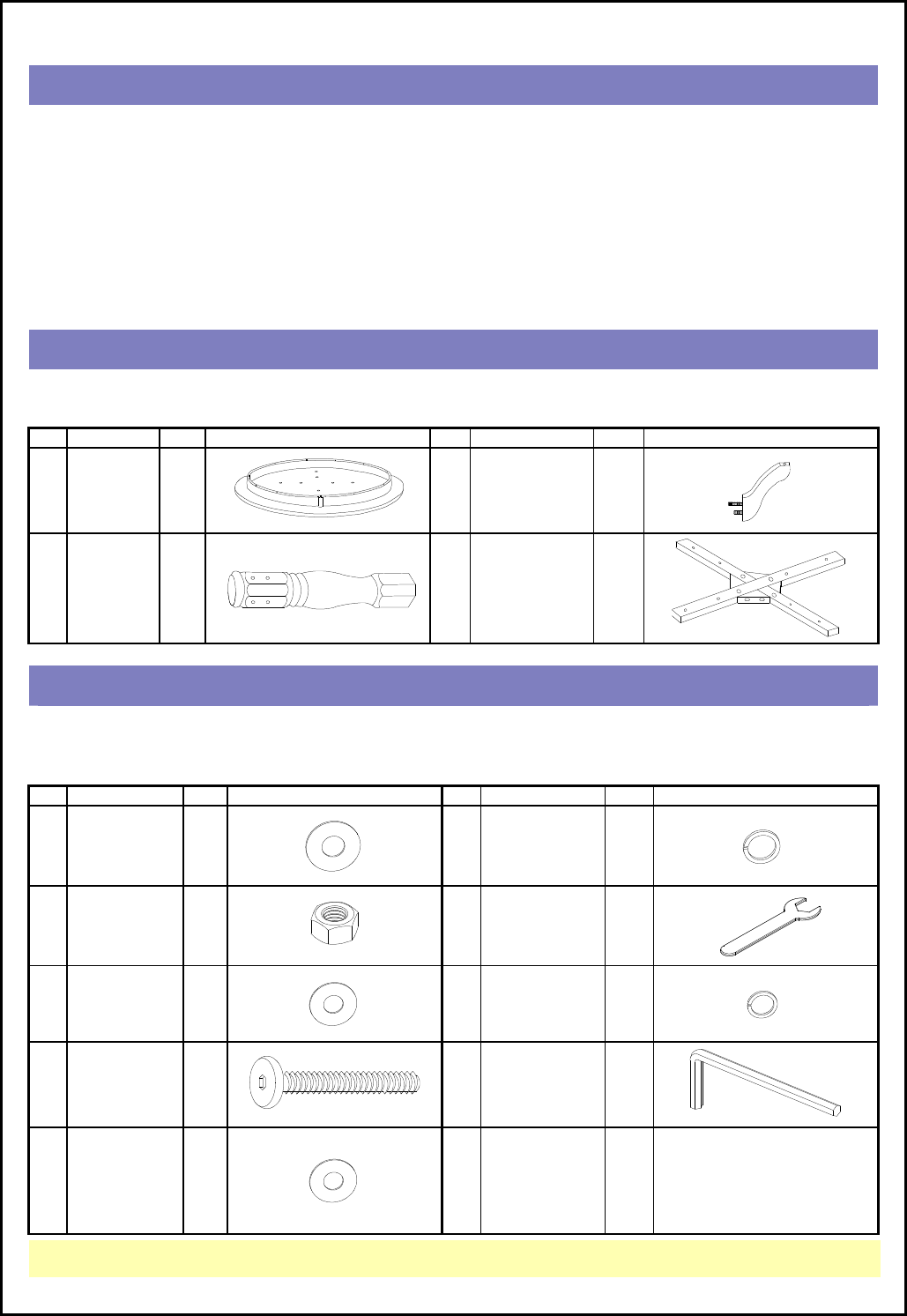 Please separate, identify, and count all parts and metal hardware. Compare with part list to be sure all parts are present.