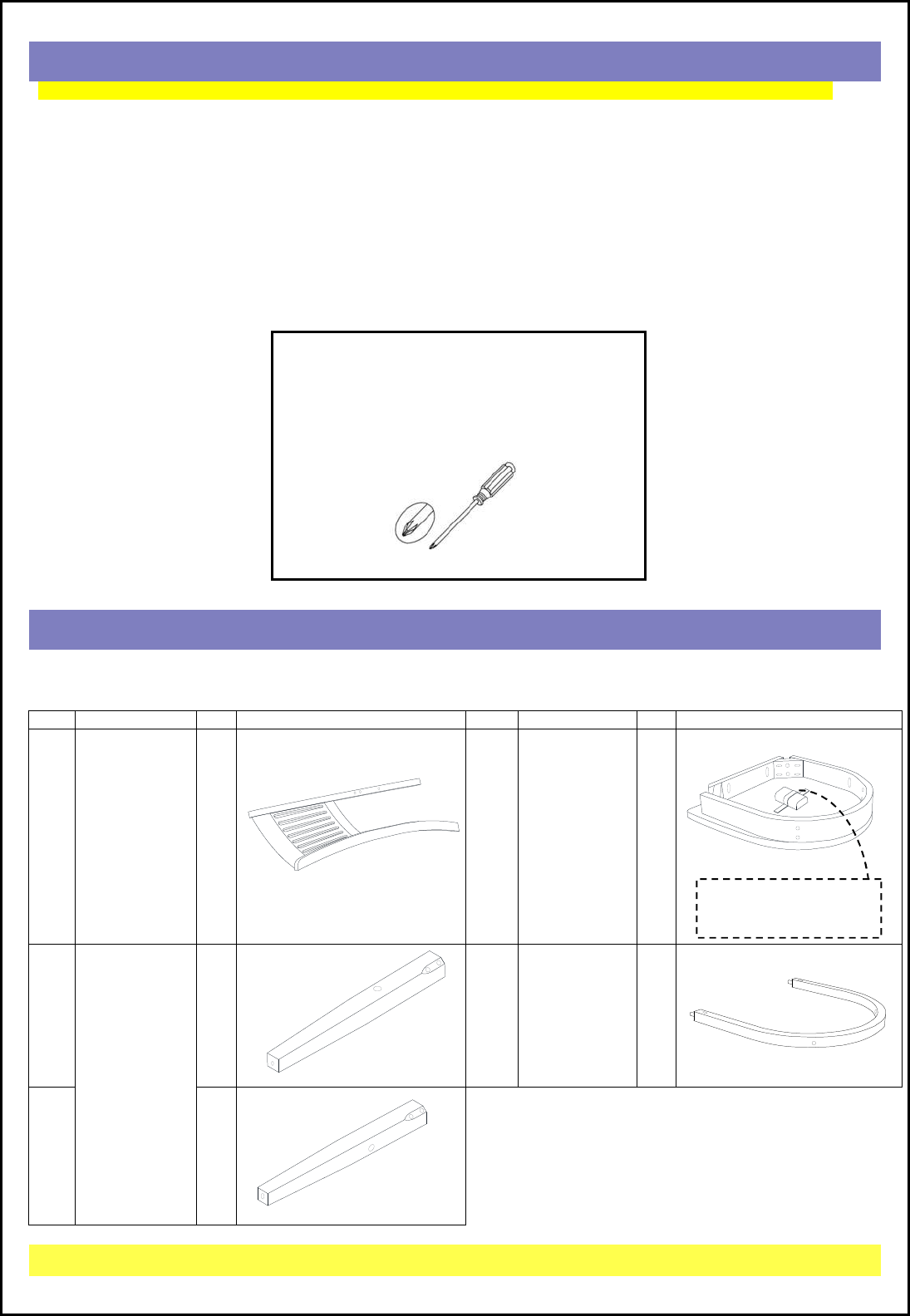 Please separate, identify, and count all parts and metal hardware. Compare with part list to be sure all parts are present.