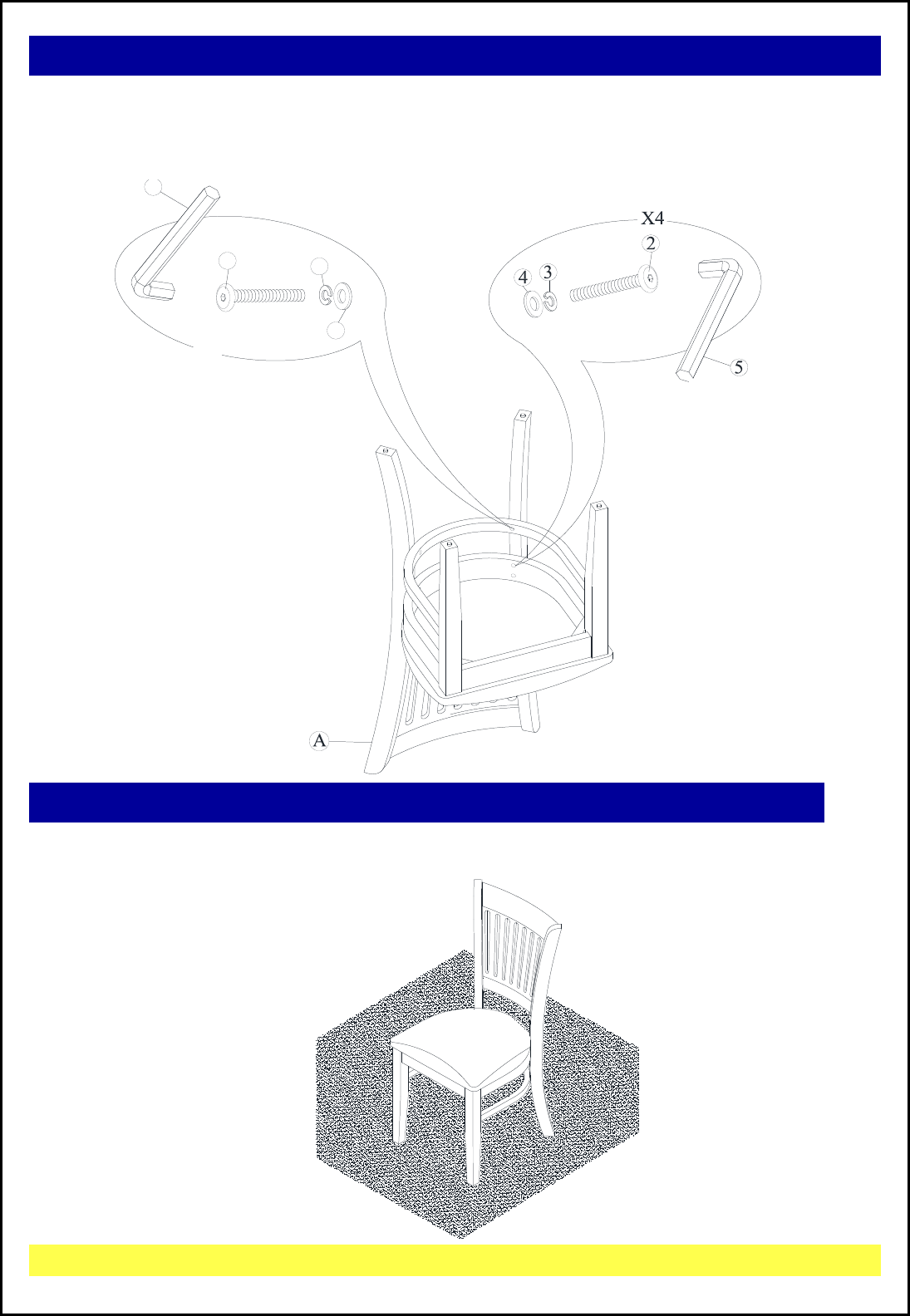 Attach the seat frame and U stretchers (D) from step 1 to the chair back (A) by using bolts (2) and