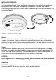INSTALLATION ET INFORMATION : Fixez la plaque de plafond sur une place accommodé sur le plafond ou le mur à l’aide des chevilles et vises. Mettez la pile dans le détecteur. Tournez le détecteur de manière que la touche de test sur la plaque de plafond se trouve devant vous. Le détecteur est maintenant prêt pour l’usage. Il est possible de faire un premier test en appuyant sur la touche de test pendant 4 secondes (voyez aussi « Tester »).