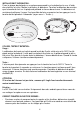 INSTALLATION ET INFORMATION : Fixez la plaque de plafond sur une place accommodé sur le plafond ou le mur à l’aide des chevilles et vises. Mettez la pile dans le détecteur. Tournez le détecteur de manière que la touche de test sur la plaque de plafond se trouve devant vous. Le détecteur est maintenant prêt pour l’usage. Il est possible de faire un premier test en appuyant sur la touche de test pendant 4 secondes (voyez aussi « Tester »).