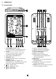 2. ÜBERSICHT 2.1 Inneneinheit: 1 10 11 12 13 14 15 16 17 18 19 2 3 4 5 6 7 8 9 1. SCHLUMMER-/LICHT- Taste: Schlummerfunktion im Alarmmodus, auch für Aktivierung der Display-Beleuchtung 2. Display (auf den folgenden Seiten werden alle Anzeigen auf dem Display erklärt) 3. Alarm-LED für MAX/MIN-Alarm 4. HISTORIE- Taste: zeigt die Daten der letzten 24 Stunden an 5. MAX/MIN- Taste: zeigt die gemessenen Minimal- und Maximalwerte an, einschließlich Uhrzeit und Datum der vorgenommenen Messung 6.