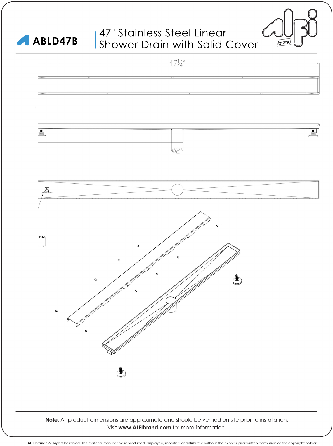 ABL D47B 47"St ai nl es sSt eelL i near ShowerDr ai nwi t hSol i dCover
