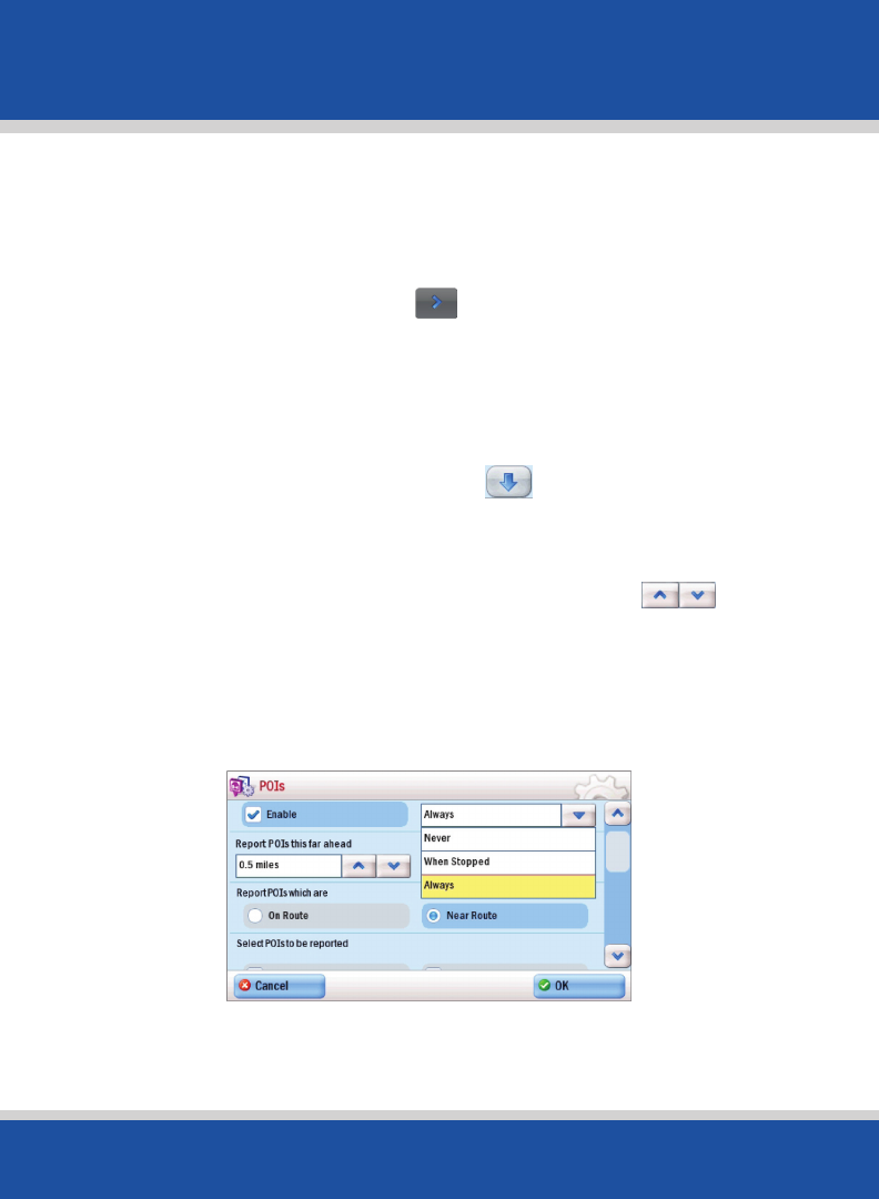 • Choose to show POIs Always, Never, or When Stopped