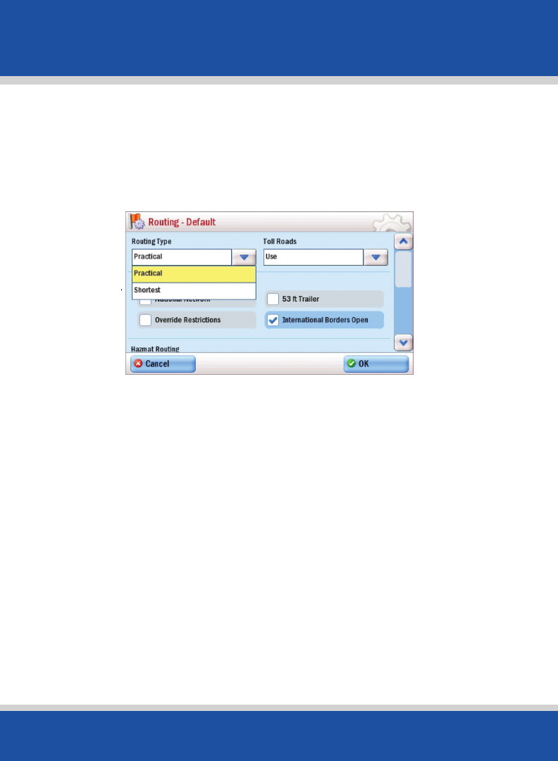 • Tap Menu > Settings > Routing.