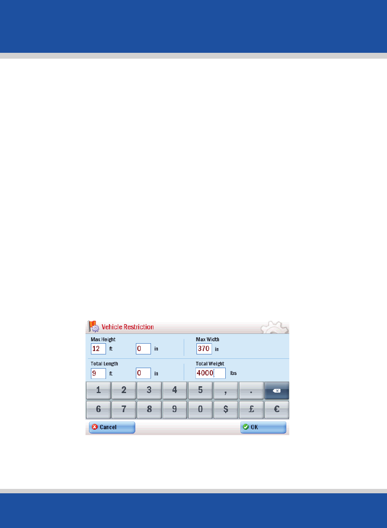 • Vehicle Restrictions: Tap Edit Vehicle Restriction