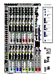Specifications Performance Maximum XLR input level Maximum XLR output level Internal headroom Master meters Channel meters Frequency response Mic CMRR at 1kHz THD+n at +14dBu 1kHz Crosstalk at 1kHz Noise, rms 22Hz to 22kHz Channel HPF Output HPF Channel EQ Mix 1-8 EQ Power supply +34dBu (inc pad) +26dBu Channels +20dB, Mix +22dB 12 segment -30 to +16dB, 0VU= +4dBu XLR 4 segment -12,0,+6+16dB (5dB before clip) 20Hz to 50kHz +0/-1dB > 80dB typical Mic to mix out < 0.