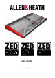 CONTENTS Thank you for purchasing your Allen & Heath ZED mixer. To ensure that you get the maximum benefit from the unit please spare a few minutes familiarizing yourself with the controls and setup procedures outlined in this user guide. For further information please refer to the additional information available on our web site, or contact our technical support team. http://www.allen-heath.com http://www.allen-heath.com/zed http://www.myspace.com/thezedspace Warranty .....................................