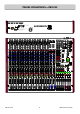 MONO INPUT CHANNEL DIR OUT 1 1 1 Direct Output Socket Standard 1/4” (6.25mm) Jack socket. Wired Tip=Hot(+), Ring=cold (-), Sleeve=Chassis. For recording individual channels, factory default is prefade signal (post mute). The nominal level is 0dBu and the output is impedance balanced. MIC 1 2 Microphone Input Socket Standard 3-Pin XLR socket wired as Pin 1=Chassis, Pin 2=hot (+), Pin 3=Cold (-).