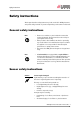 Safety instructions Safety instructions This chapter describes safety instructions/cautions valid for AVT GigE cameras and special safety instructions/cautions depending on the camera model used. General safety instructions Note • • • Note • There are no switches or parts inside the camera that require adjustment. The guarantee becomes void upon opening the camera casing.