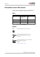 Introduction Conventions used in this manual To give this manual an easily understood layout and to emphasize important information, the following typographical styles and symbols are used: Styles Style Function Example Bold Programs, inputs, or highlighting important information bold Courier Code listings etc. Input Upper case Register REGISTER Italics Modes, fields Mode Parentheses and/or blue Links (Link) Table 2: Styles Symbols Note This symbol highlights important information.