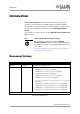 Introduction Version Date Remarks continued from last page V5.0.0 15.05.12 [continued] [continued] Added frame rates for ROI height = 720 • chapter Manta G-095B/C: ROI frame rates on page 137 • chapter Manta G-125B/C: ROI frame rates on page 138 IR cut filter: • Changed IR cut filter to (type Jenofilt 217): see Figure 41: Approximate spectral transmission of IR cut filter (may vary slightly by filter lot) (type Hoya C5000) on page 75 V5.0.1 23.05.