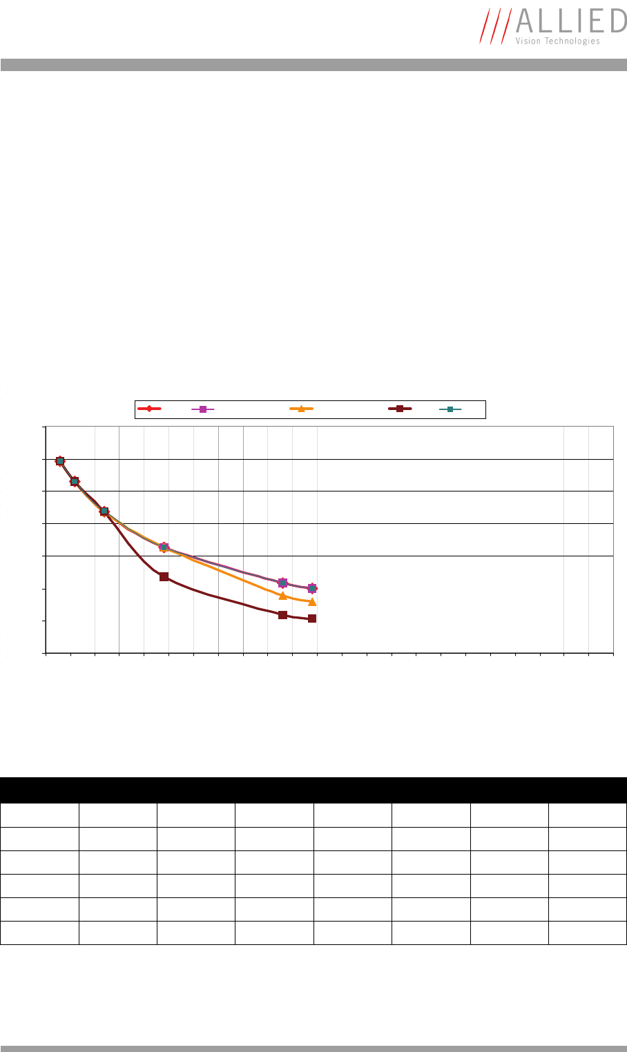 Table 107: Frame rates (fps) of PIKE F-210 as function of AOI height [width=1000] (sub-sampling)