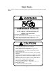 Safety Decals These decals are located as shown on the Decal Location diagram and the Sub-Frame Assembly diagram. WARNING OVERHEAD HAZARD STAY AWAY FROM UNDER LIFT ARMS AND BUCKET To prevent serious injury or death: 1. Do not stand or work under raised loader, unless supported. 2. Support bucket and lift arms before working under loader. 3. Lower loader to the ground before leaving seat. CAUTION 1. Read Operator's Manual before operating. 2. Move and turn tractor at low speed. 3.