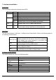 3. Hardware Installation Front Panel The front panel provides the following status LED’s. LED STATUS Description PWR/STAT Off No power Red On 1. Power on Red Blink 1. System startup LAN Off no Ethernet link detected Green On 10/100Mbps Fast Ethernet link detected. No activity.