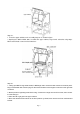 Step<3>: 1. Place the upper cabinet on the assembly Step<2> as shown in figure. 2.Opening the double folded door, assemble the upper cabinet, large funnel & bracket using 22pcs M6*16 round head screws and faced washers. Step<4>: 1. Taking 4pcs M6*12 large head screws, & M6 flange nuts to mount the dust collector to the back panel. Plug in assembled dust collector plug into the socket of switch box through the channel on the right side of cabinet. 2. Mount pressure regulating valve left front leg.