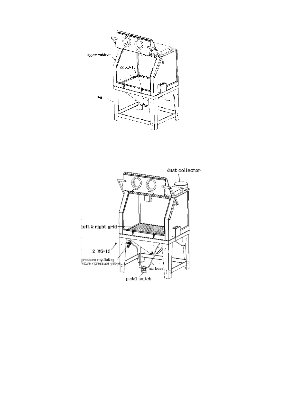 1. Taking 4pcs M6*12 large head screws, & M6 flange nuts to mount the dust collector to the back panel.
