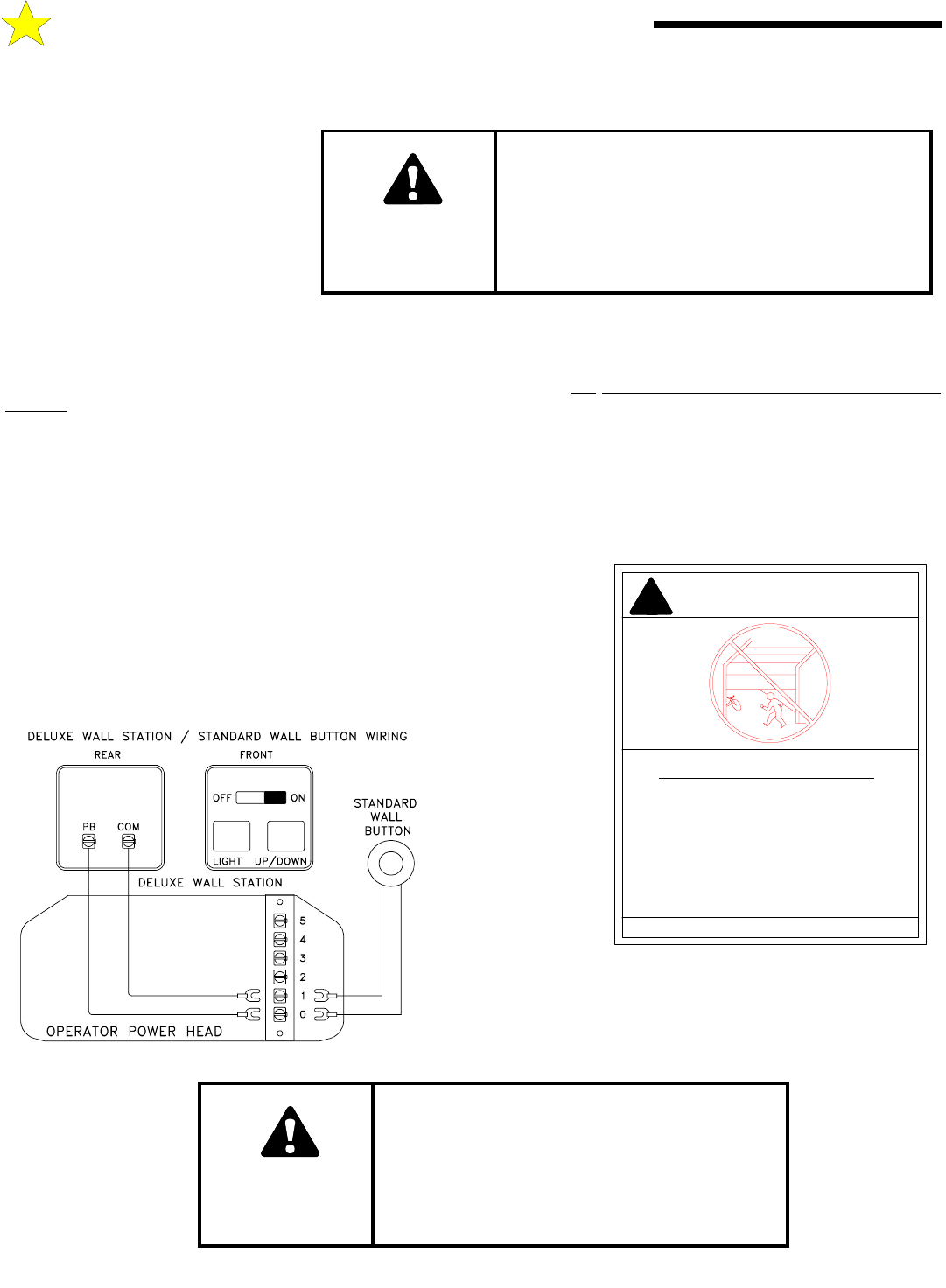 control over the garage door operator and its functions at all times. You may install one Deluxe Wall Station and one or more stan-