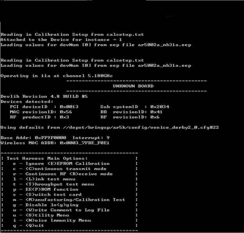 For example, press “c” to run the continuous transmit test, or press “r” to run the