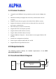 # Feature Detailed Description and Functionality Report 2.6 Requirements of Reliability, Maintainability and Quality # Feature Detailed Description 2.6.1 2.6.2 MTBF Maintainability Ÿ Ÿ 2.6.3 Quality Ÿ Mean Time Between Failure > 30,000 hours There is no scheduled preventive maintenance required The product quality is followed-up by ALPHA factory quality control system 2.7 Environmental Requirements # Feature Detailed Description 2.7.