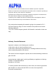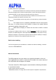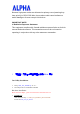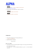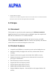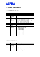 2.6 Requirements of Reliability, Maintainability and Quality # Feature Detailed Description 2.6.1 2.6.2 MTBF Maintainability Ÿ Ÿ 2.6.3 Quality Ÿ Mean Time Between Failure > 30,000 hours There is no scheduled preventive maintenance required The product quality is followed-up by ALPHA factory quality control system 2.7 Environmental Requirements # Feature Detailed Description 2.7.1 Operating Temperature Conditions Ÿ 2.7.2 Non-Operating Temperature Conditions Ÿ 2.7.