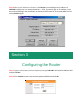 Step 8 After your IP address is released, click Renew. You should get an IP address of 192.168.1.x (where x is a number between 2 - 254). If you don’t get an IP address, reset the router by holding in the reset button on the back of the router for 10 seconds while it is ON and try Renew again. Section 3 Configuring the Router Step 1 Open a web browser (Internet Explorer) and type 192.168.1.1 in the URL Address field and press Enter. Step 2 Enter admin for both username and password fields and click OK.
