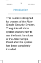 USER MANUAL 3 WWW.ALDER.COM Introduction This Guide is designed for owners of the Alder Simple Security System. The guide will show system owners how to use the basic functions of the Alder Simple Panel after the system has been completely installed.