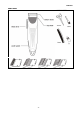 ENGLISH REMINDERS • • • • Cut the hair in a relaxed and slow manner. Use short strokes only to work gradually over the entire head. Always take off a little hair at a time, you can always trim off additional hair later. As you work, comb the hair frequently back into the style to which you are cutting. When cutting with this hair clipper it is better to leave the hair dry, not wet. With the hair dry, it is much easier to control the amount of hair being out.