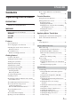 ENGLISH Contents Operating Instructions PRECAUTIONS IMPORTANT INFORMATION ........................ 7 WARNING Points to Observe for Safe Usage ........................ 7 WARNING ...................................................... 8 CAUTION ....................................................... 9 NOTICE .......................................................... 9 Features Favorite Function ................................................ 11 About Swiping the Touch Screen ......................