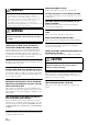 ENGLISH Contents Operating Instructions PTY (Program Type) Tuning ..........................20 Displaying Radio Text ....................................20 CD/MP3/WMA/AAC Playback ..........................................................21 PRECAUTIONS IMPORTANT INFORMATION ....................... 7 WARNING Points to Observe for Safe Usage ..................... 7 WARNING ................................................. 8 CAUTION .................................................. 8 NOTICE .............